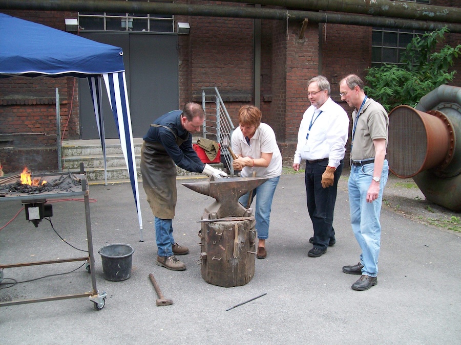 An old forge in the middle of the village Ruhrgebiet. Flying sparks all around because the iron must be stroked when its hot. A sweaty adventure with a big hammer and a strong ambos. Looks so easy when its done by professionals! Try it! It will make a lot of fun. You will need Your time to produce Your first nail but it will be a long time in Your memory. We have many nice workshops in the Landschaftspark but this one is a perfect choice for the surrounding.